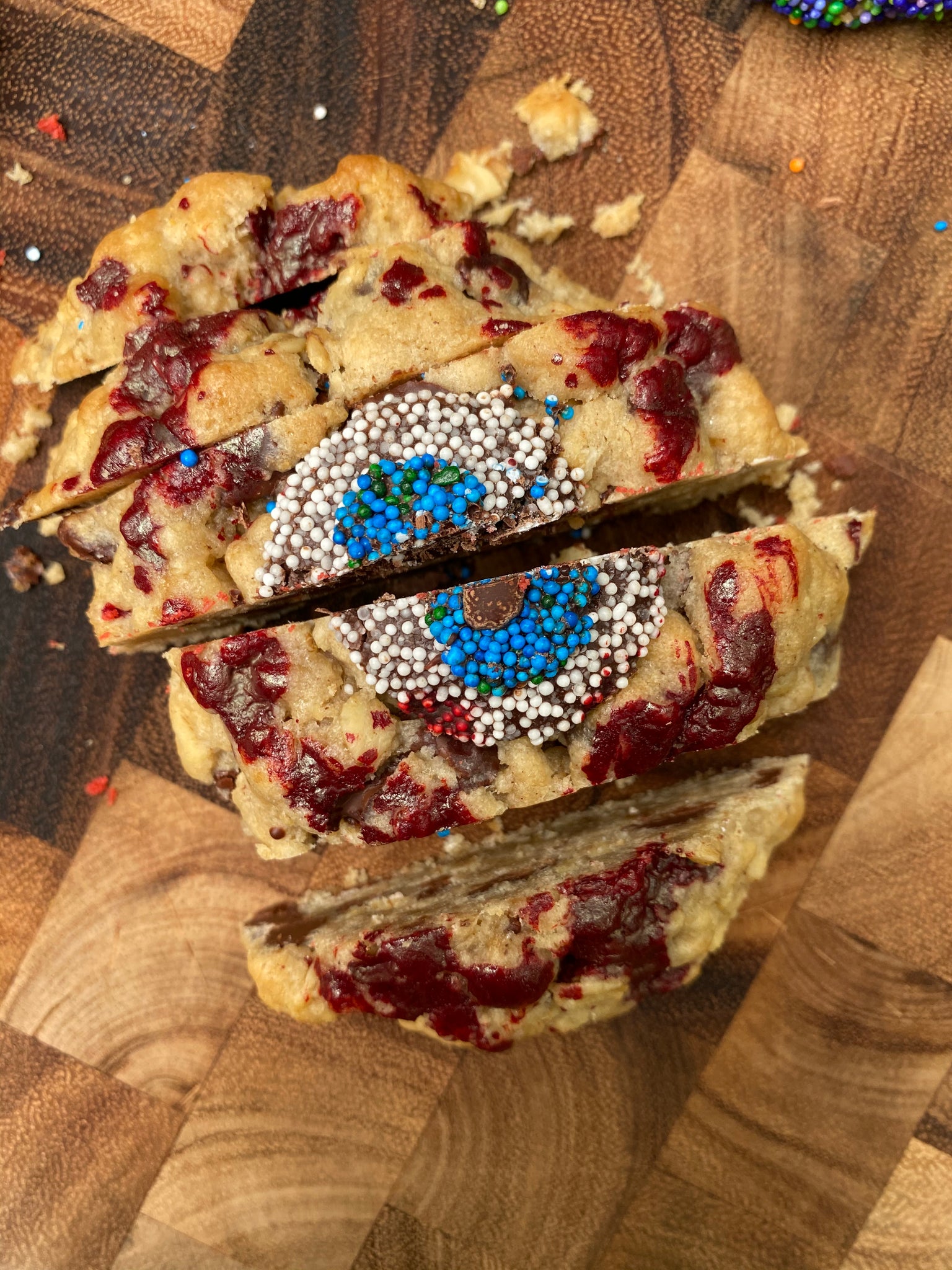 bloody eyeball: Peanut butter chocolate chip X hand painted and house made nonpareil eyeball, bloody red drippings....(edible paint)