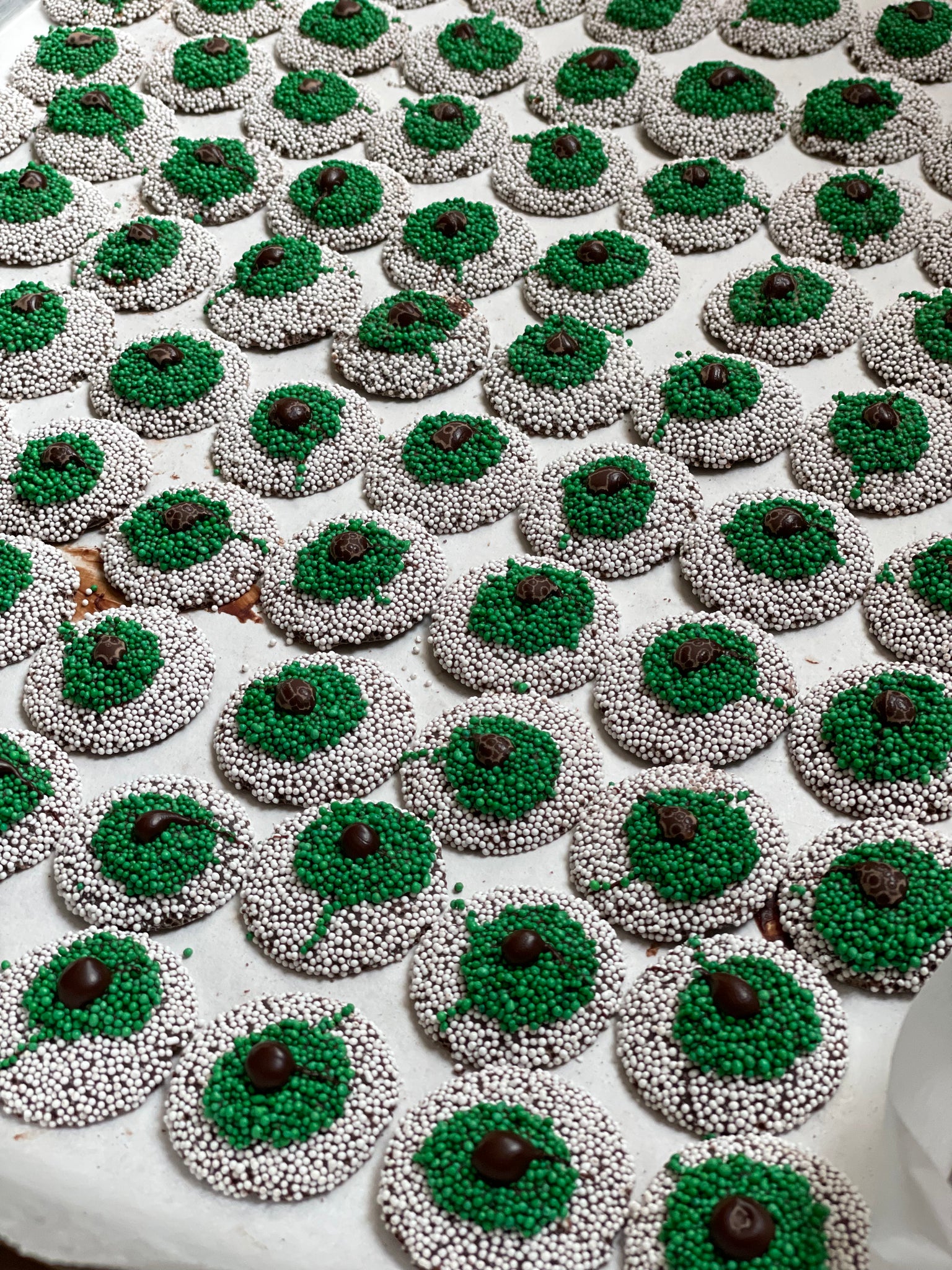 Going to a party? Bring our BIG FAT cookies and slice a few so one person doesn't hoard all the goodness! We like to slice one cookie into 1/4 or 1/8 or long wedges 6-8 pieces per cookie.