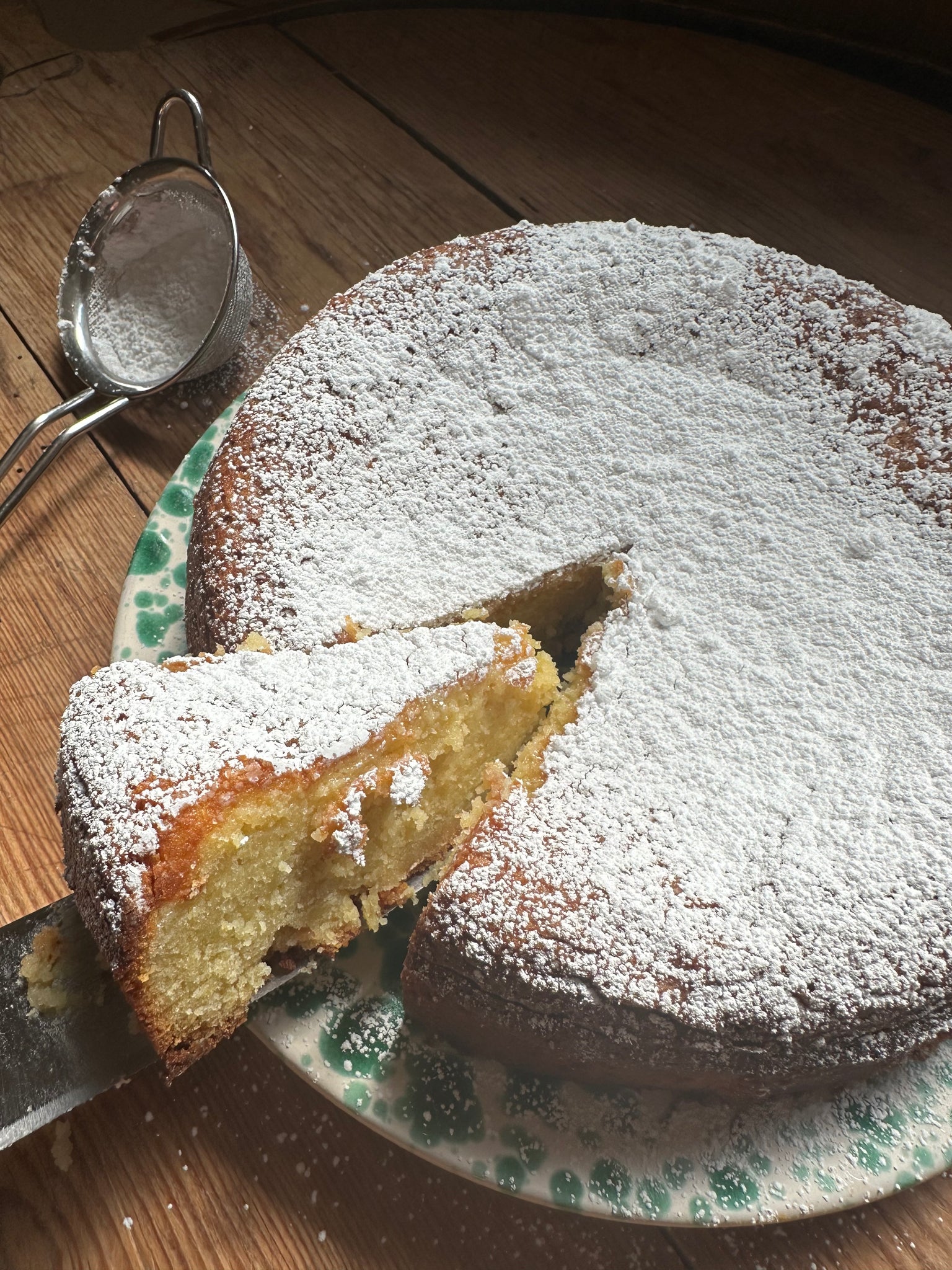 9" single layer,serves 8-12. Made with almond flour and gluten free ingredients, moist from olive oil, tart from fresh lemons, coconutty from fresh coconut, cinnamonny or chocolaty.