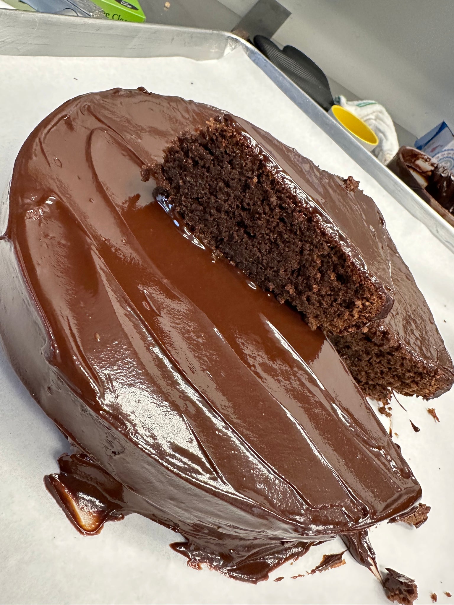 - Quadruple chocolate: arrives naked with chocolate ganache to pour over cake. 2.5 lbs 🍫🍫🍫made with almond flour, 2 types of cocoa and 2 different chocolates. This cake. This divine and dense quadruple chocolate cake is addictive in the very best way. Chocolate ganache on the side meant to pour over